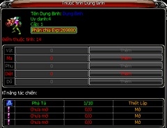 Các bạn có thể dùng điểm kinh nghiệm mà Dụng Binh kiếm được cùng chủ nhân để Thăng cấp Dụng Binh hoặc Thăng cấp các kỹ năng đã được thiết lập vào ô kỹ năng tác chiến.