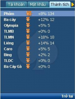 - Các thông tin về thành tích, điểm kinh nghiệm, cấp bậc trong các game