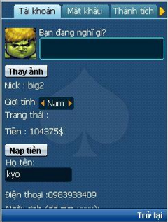 - Tạo profile người dùng: Profile người dùng trong mạng xã hội tương ứng với tài khoản người chơi trong phần game. Màn hình profile sẽ hiển thị những thông tin và những chỉ dẫn liên quan đến người dùng thuộc về phần mạng xã hội: Tạo album và up ảnh, Tạo feed lên tường , Comment feed, anh…